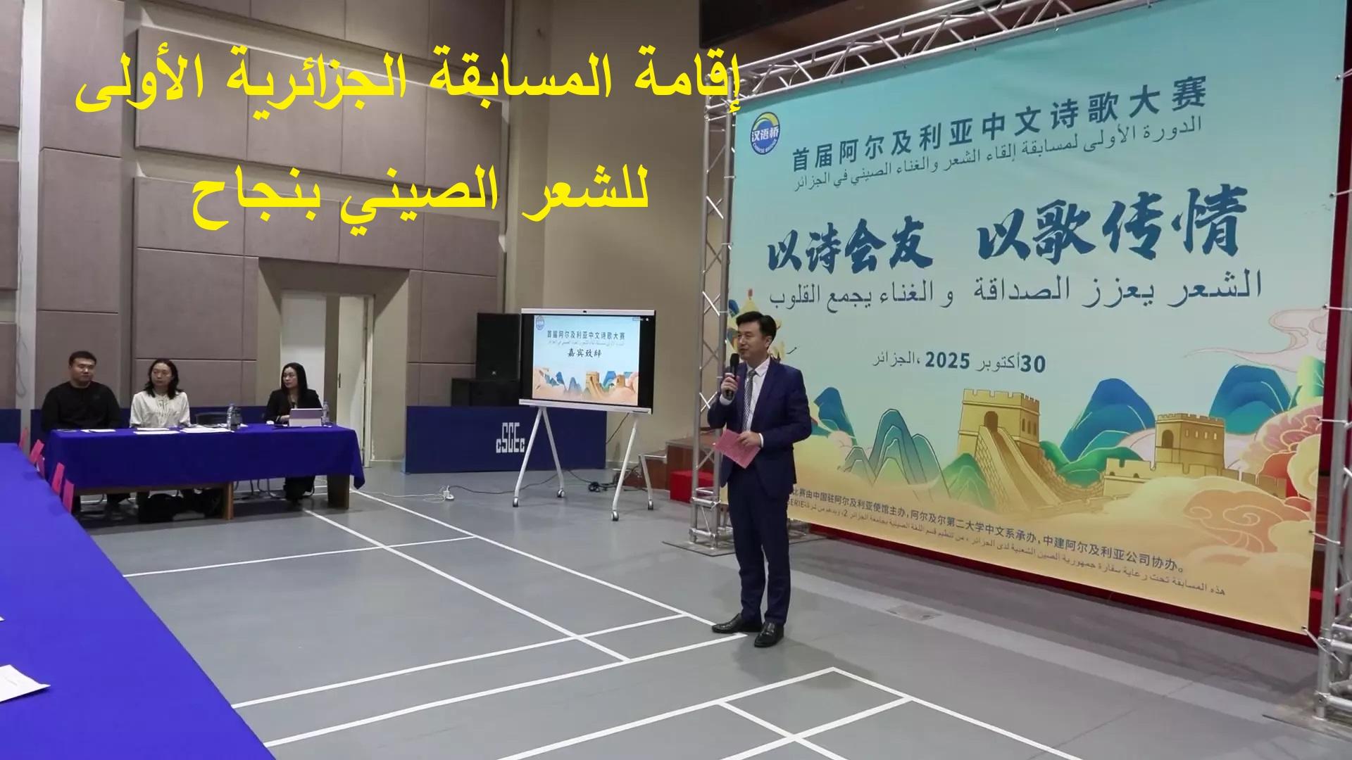 أُقيمت بنجاح المسابقة الجزائرية الأولى للشعر الصيني في الجزائر العاصمة. وحضر الفعالية ما يقارب 100 شخص، من بينهم تشاو بينغ شنغ، القائم بالأعمال في السفارة الصينية بالجزائر، وأعضاء هيئة التدريس والطلاب من قسم اللغة الصينية بجامعة الجزائر الثانية، ومعلمو اللغة الصينية، والطلاب الوافدون من الصين، وهواة اللغة الصينية.