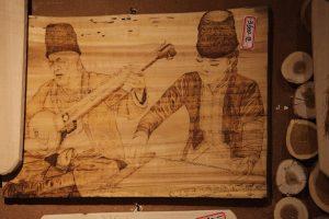 كيرانمو ريزاك، أحد ورثة فن الرسم بالنار. قام بإنشاء أعمال فنية تُصوّر مناظر توربان المتنوعة 5 أبريل في شانشان بشينجيانغ، وذلك في ورشة التراث الثقافي غير المادي بقرية تويوغو السياحية الثقافية. تُجسّد أعماله الحياة والسعادة، ناقلة نبرة مبهجة وحماسية، مما يتيح للسياح تقدير سحر شينجيانغ من خلال فن الرسم بالنار.